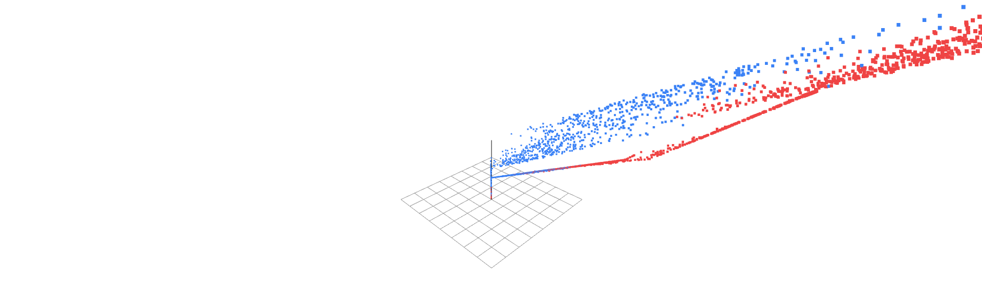 A activation warps the axis differently but with the same principle. It compresses the entire infinite real line into the finite interval (0, 1), with non-uniform scaling that is strongest at the extremes. At large positive values of z (z > 5), the axis is a flat plateau near 1, incremental changes from z = 5 to z = 6 produce almost no movement along the axis (0.993 → 0.997). The same flattening occurs for large negative values (→ near 0). Only in the narrow region around z = 0 does the axis retain meaningful movement: moving from z = 0 to z = 1 shifts the coordinate from 0.5 to 0.73, a substantial repositioning relative to the axis's entire range. This creates a "focusing effect" where points with moderate weighted sums are thrust far apart along the axis, while points in the saturated regions are locked in place, their distances collapsed to near-zero. In score terms, while enforces a hard threshold between "positive" and "negative", sigmoid creates a gradient from "definitely postive" to "definitely negative," with a wide margin of uncertainty where small differences in input produce large differences in score. The manifold's movement through this dimension is thus highly localized: only points near the axis's sensitive center drift and separate; the rest are mostly cemented into the compressed regions.
