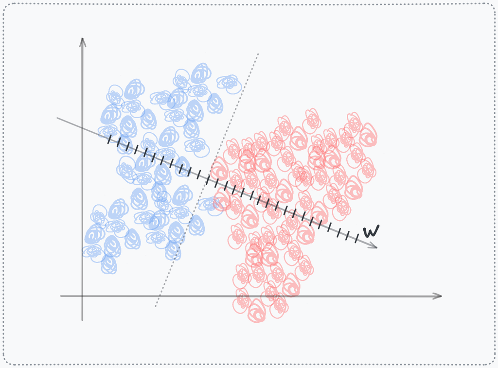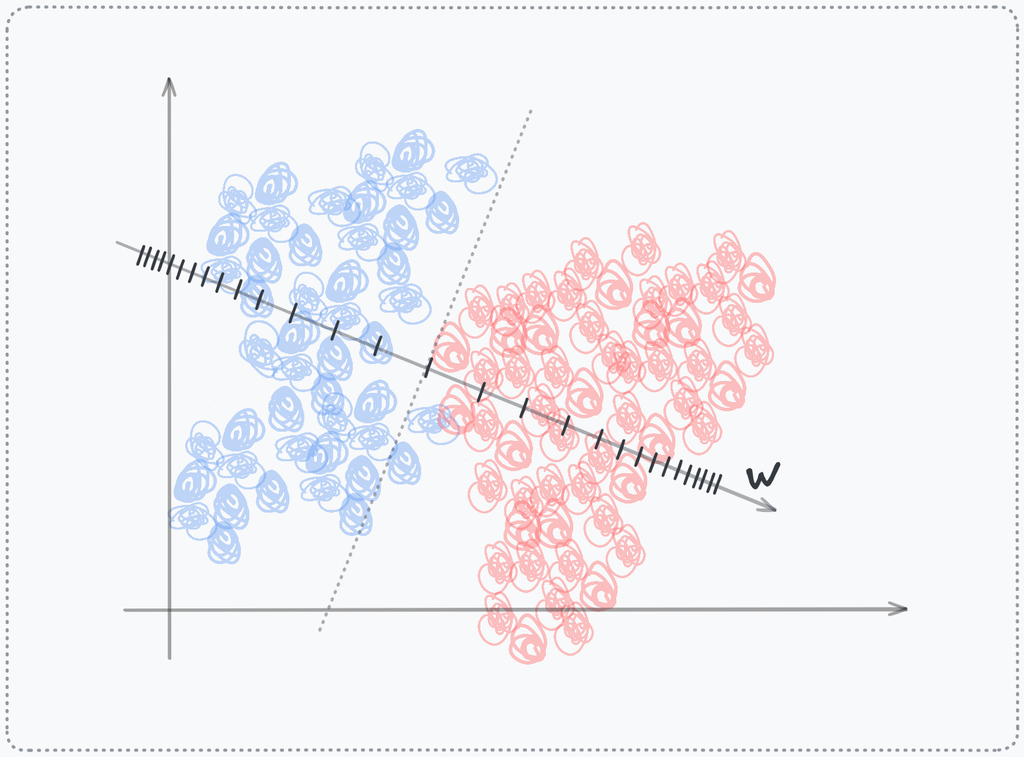 Take the same computation . Rather than interpreting this as defining a hyperplane in the input space, view z as a coordinate value along a newly forged axis. The hyperplane is merely the origin of this axis. The neuron's output for a data point tells you its position along this axis (signed distances): how far it lies from the origin, in the direction of . The weight vector is the basis vector of this new dimension.